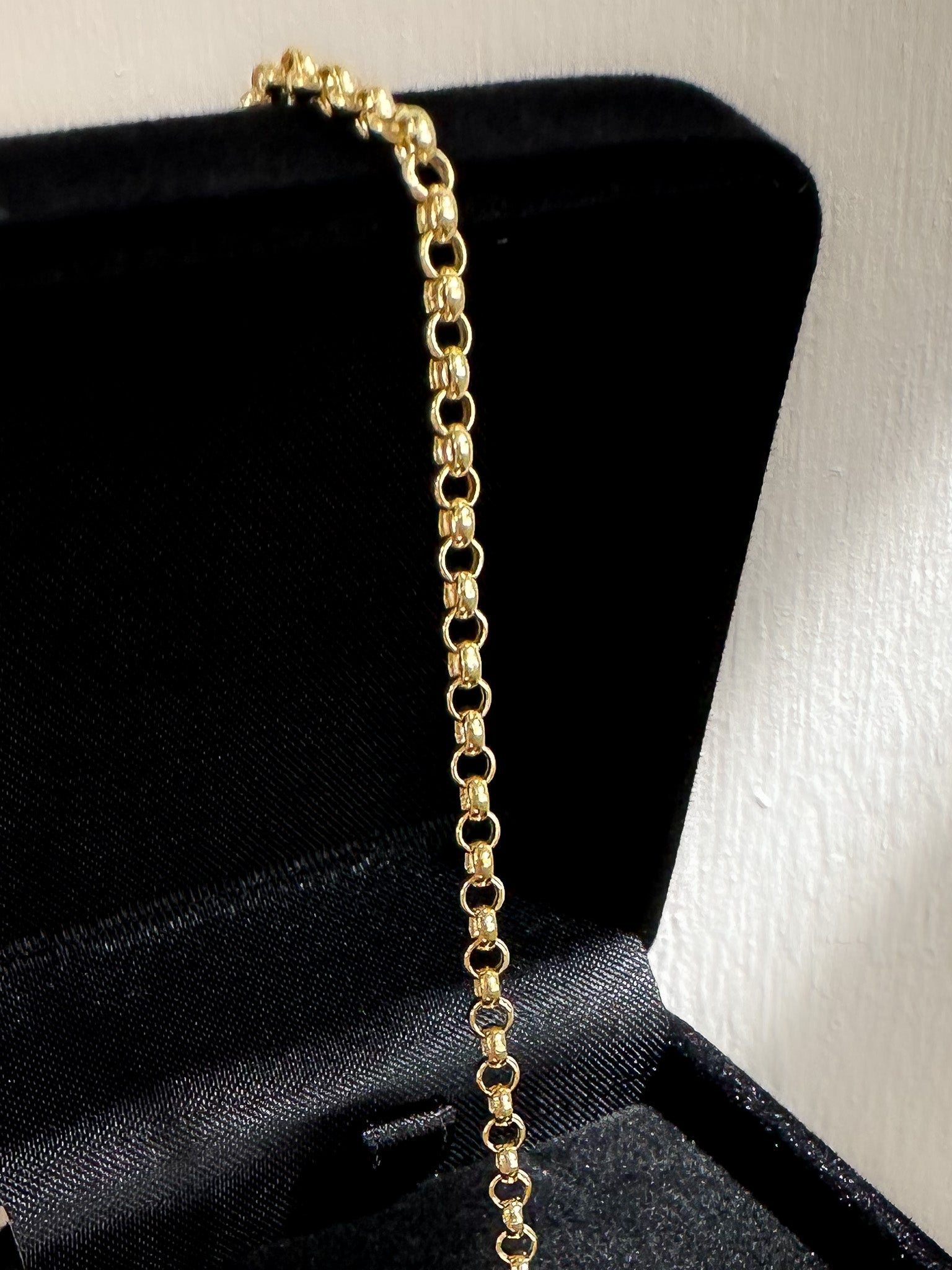 This gold bracelet features a sturdy hollow-link design with a width of 2.6mm, creating a balance between daintiness and durability.
