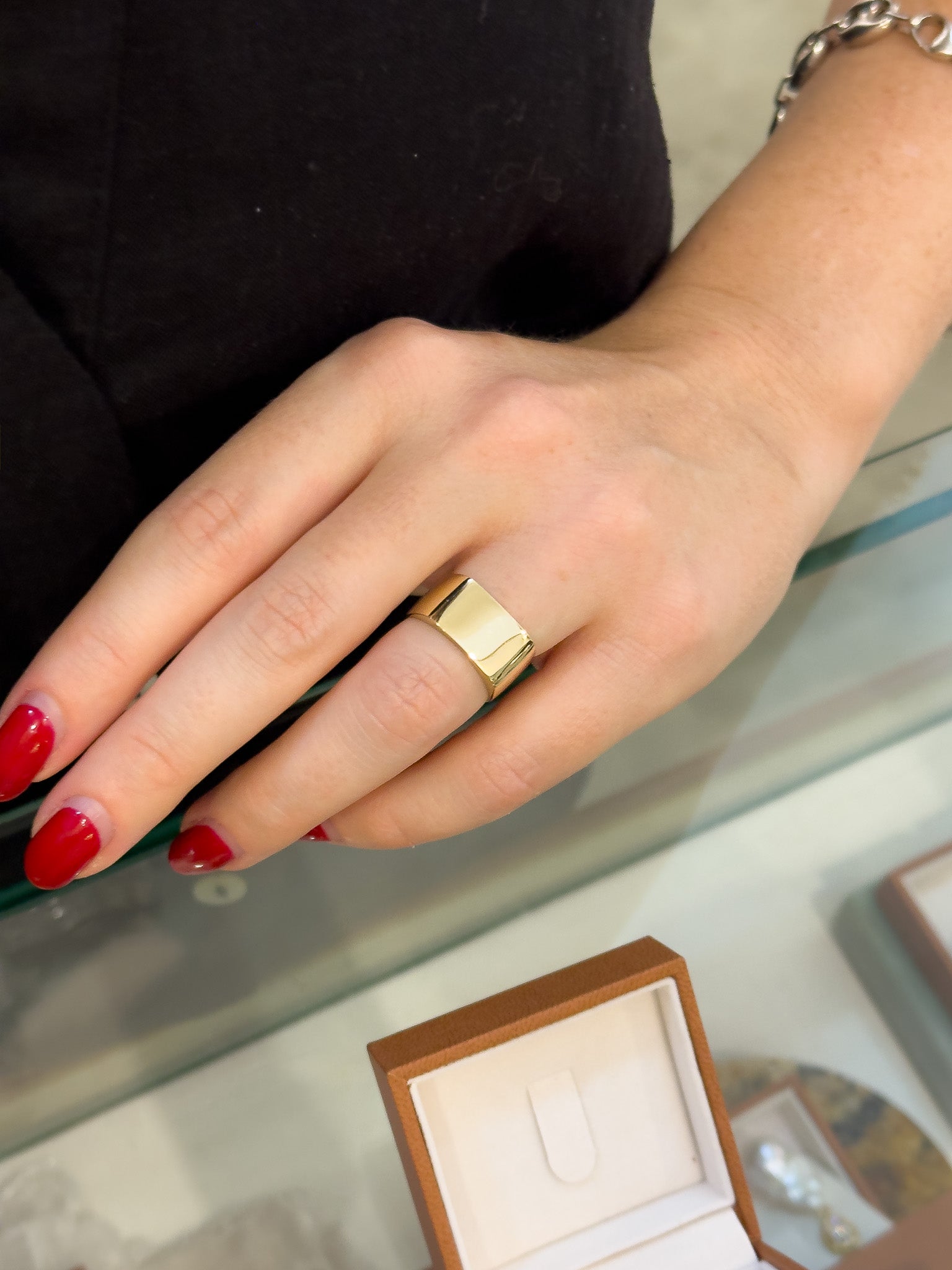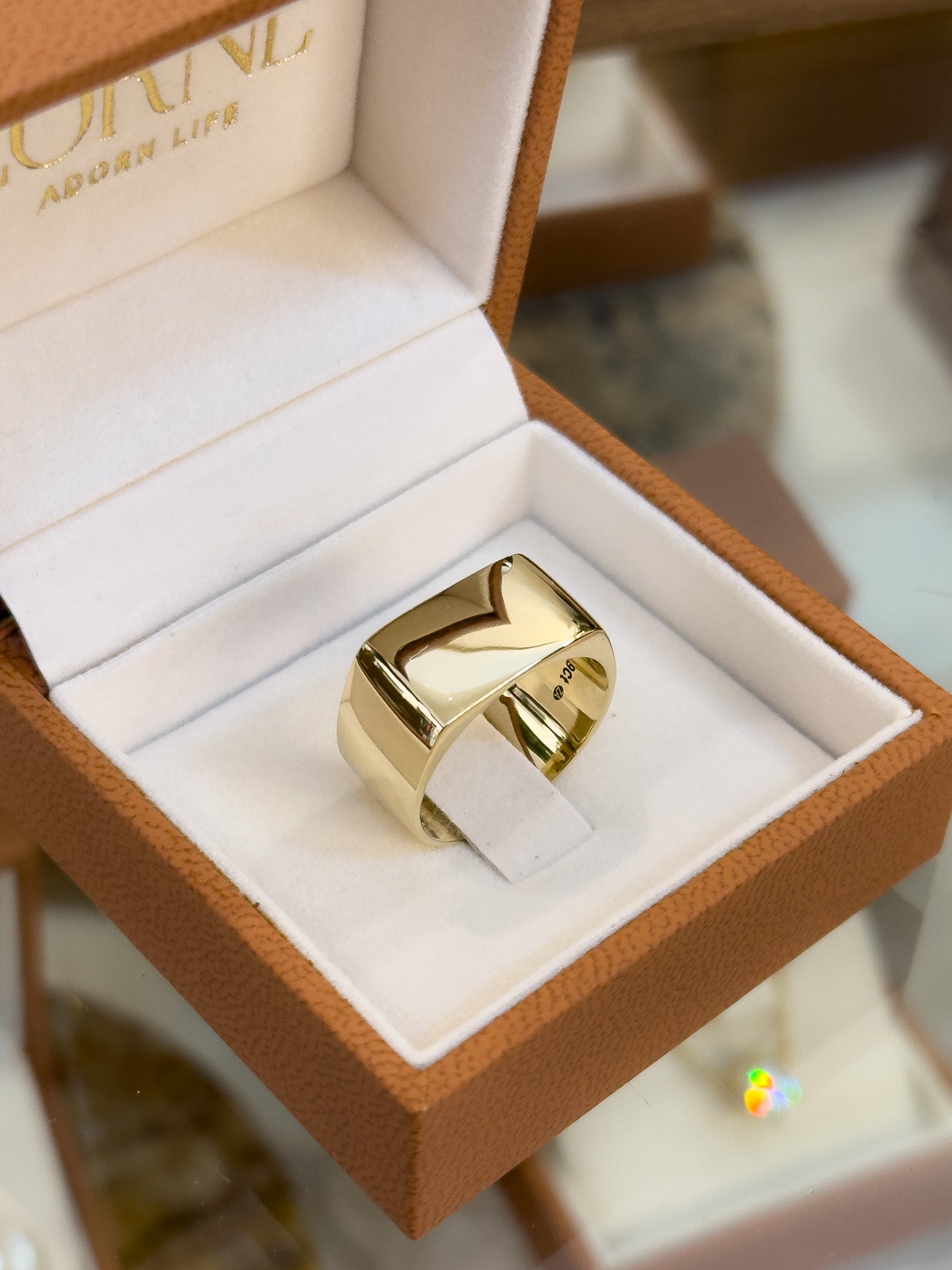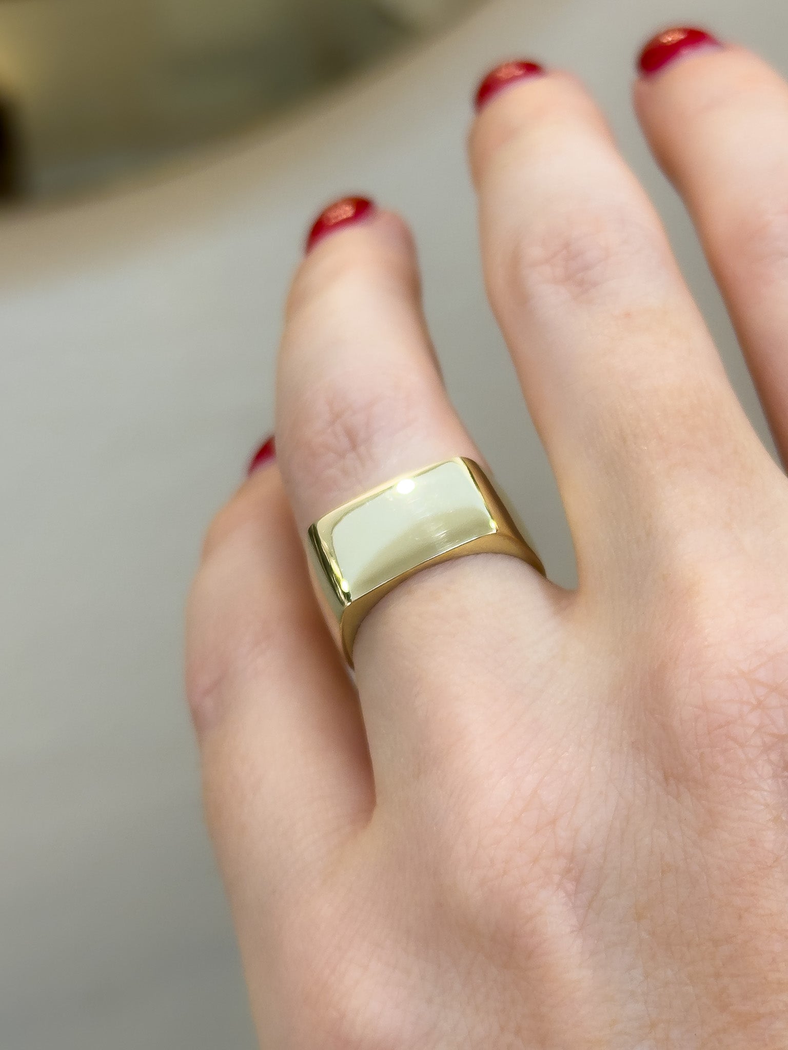Schön reflektierende Siegelringoberseite, die die Breite durch den gesamten Schaft trägt.