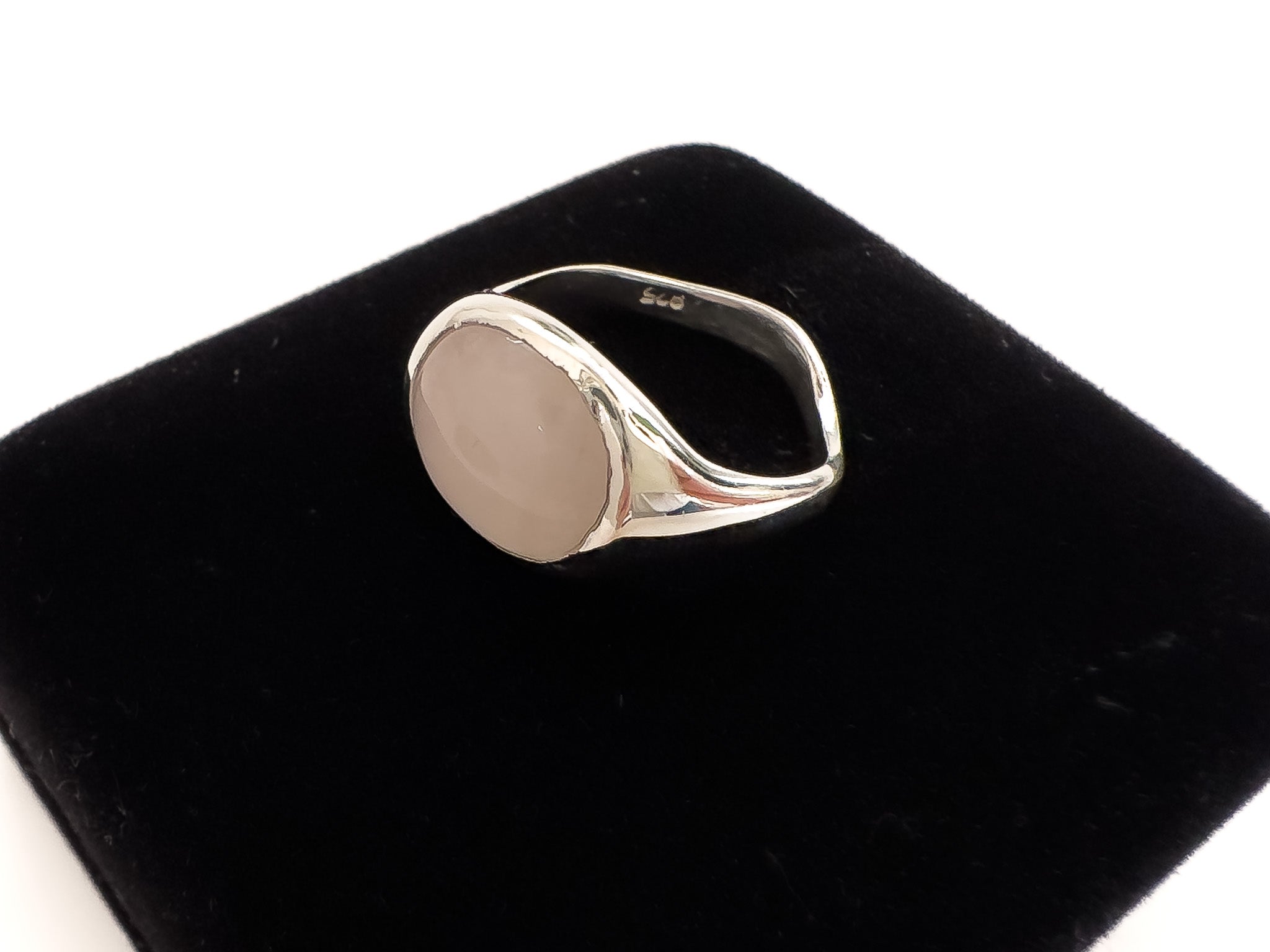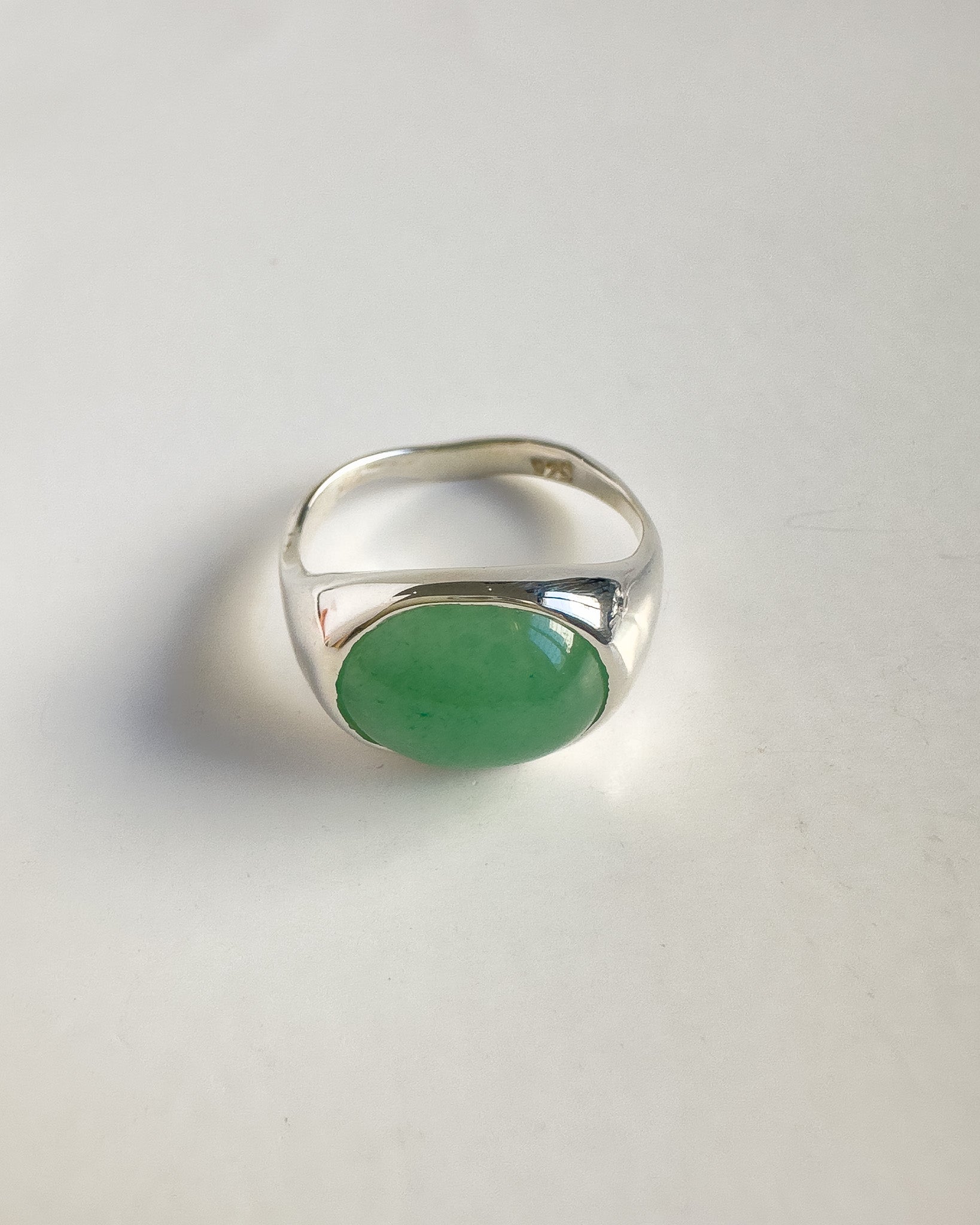 Wavy ring design featuring a 10mm x 12mm natural cabochon gemstone and an irregular, wavy band.
